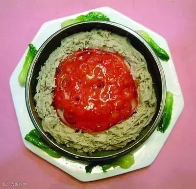 关键:五花肉切得薄些方能卷曲,蒸好的五花肉隔夜(放入冰箱内)再蒸食,口感更佳。
