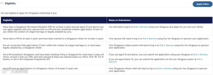 资料图/新加坡公民申请适合人群,来源:ICA