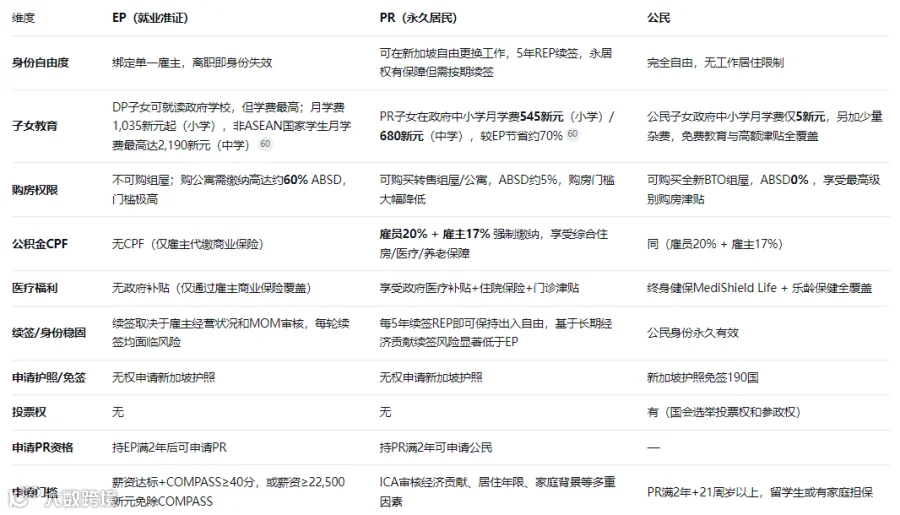 从EP起步,到PR扎根,再到公民融合,新加坡身份这条攀升阶梯,福利逐级解锁、教育与稳定逐级上升。