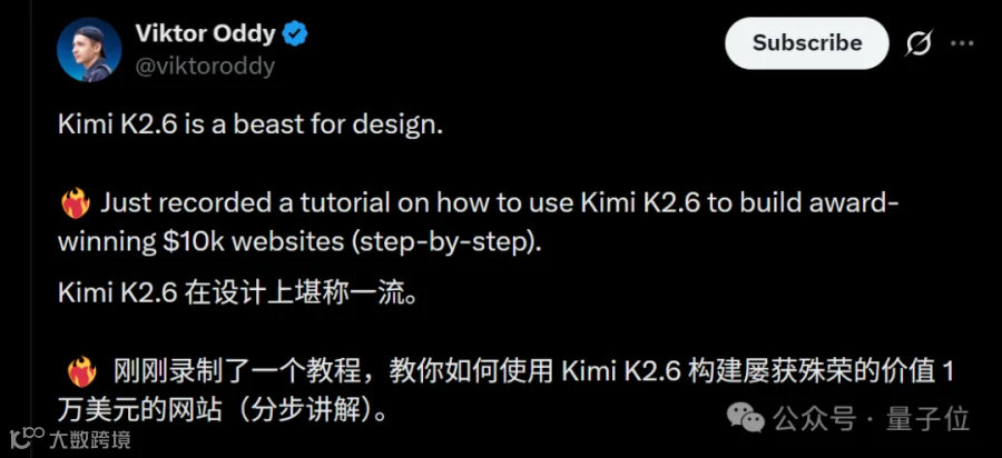 开发者@Viktor Oddy实测展示了Kimi K2.6的高效网站构建能力。整个流程无需编写代码或使用设计软件,仅通过语言描述即可完成。