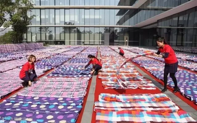 2016年11月3日,阿里巴巴西溪园区晒出近3000床被子,场面异常震撼,这些被子将全部供给迎战双11的阿里人休息使用。