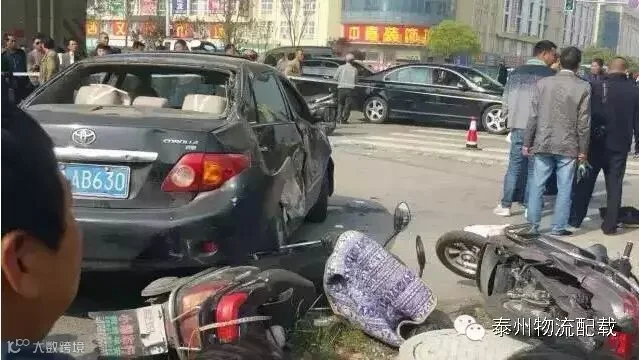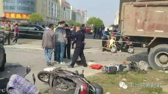 刚刚,泰东转盘那里,中嘉装饰城门口的十字路口,高架桥下,发生一起严重交通事故。一渣土车连撞几辆电动车和一辆丰田轿车,其中两辆电动车被压严重变形,有人当场死亡,内脏都被压出几米远,现场惨不忍睹。