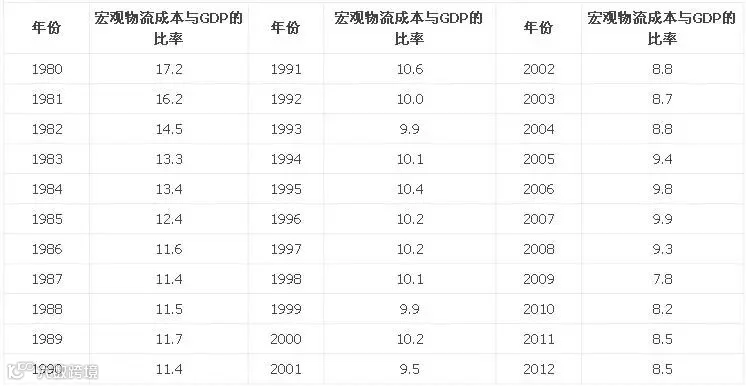 在这样的背景下,“成本高、效益低”的问题水落石出。然而,降低成本、提高效益的出路在哪里呢?在各项成本中,能源成本高位运行、劳动力成本具有刚性,根据物流统计数据发现,降低物流成本有巨大潜力,最终以降低物流成本为突破口,通过优化业务流程,进而降低整个经济社会运行成本。同一时期,在日本,通过物流发展来降低经济运行成本的“第三利润源”学说逐步兴盛。也是在这一大背景下,物流成本核算应运而生,逐渐由理论走向实际,以确切地衡量一国的物流成本,指导物流发展政策;宏观物流成本与GDP的比率也逐渐成为国际比较中的一个核心指标。