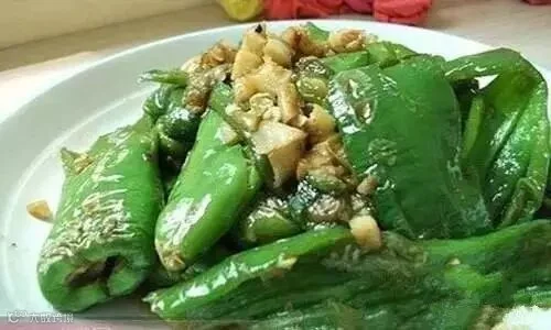 青椒5个、大蒜3瓣,醋、芝麻油、生抽适量