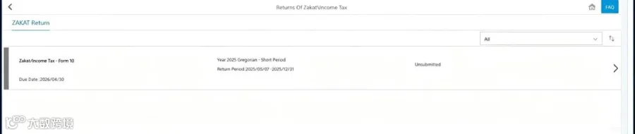 沙特新注册企业常面临一个特殊税务现象:登录沙特税务与海关总局(ZATCA)系统时,发现2025年企业所得税(CT)申报状态显示为“逾期”,且标记为“短期申报期”。企业主普遍困惑于“未运营满一年为何逾期”的问题。
