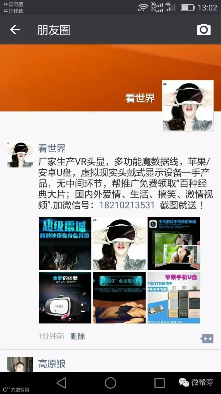 厂家生产VR头显,多功能魔数据线,苹果/安卓U盘,虚拟现实头戴式显示设备一手产品,无中间环节,帮推广免费领取“百种经典大片;国内外爱情、生活、搞笑、激情视频”.加微信号:18210213531 截图就送