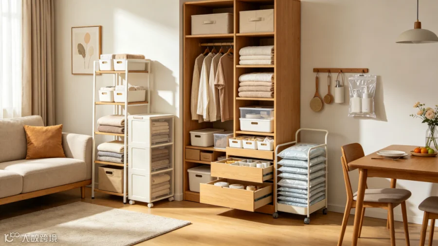 受城市居住条件限制,韩国小户型、单身公寓普及率极高,空间集约化利用成为全民刚需。高潜代表品类:分层置物架、夹缝收纳柜、衣柜折叠收纳盒、厨房分格收纳、卫生间壁挂收纳、真空压缩收纳袋、迷你多功能收纳推车。此类产品体积小巧、发货便捷、售后风险低,适配 Coupang 火箭仓配送体系,市场需求稳定,是新手低成本入局的核心优选品类。