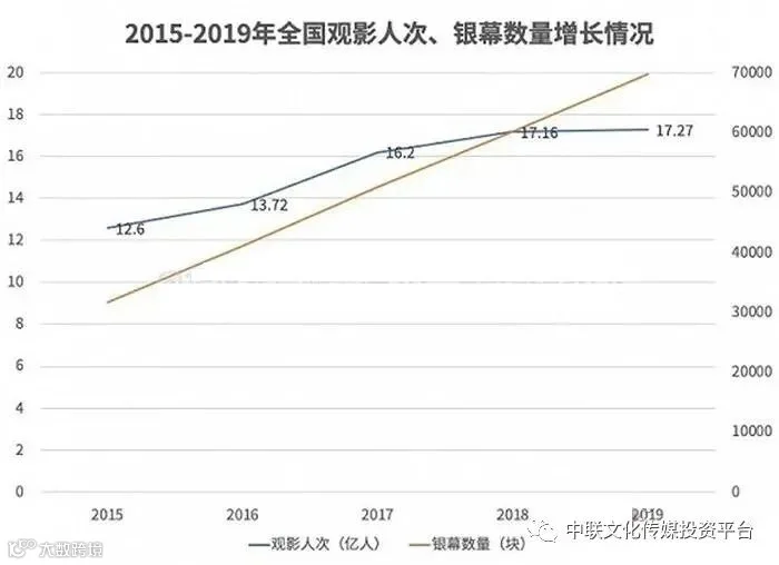 但也要指出,虽然影院数量在快速增加,但观影人数的增长却不如影院的增速。据调查,2015年至2019年,全国观影人次从12.6亿增长至17.27亿。除了2017年观影人次相比前一年增长了18%,其余几年增长率都在10%以下,2019年增长率更是仅0.6%。