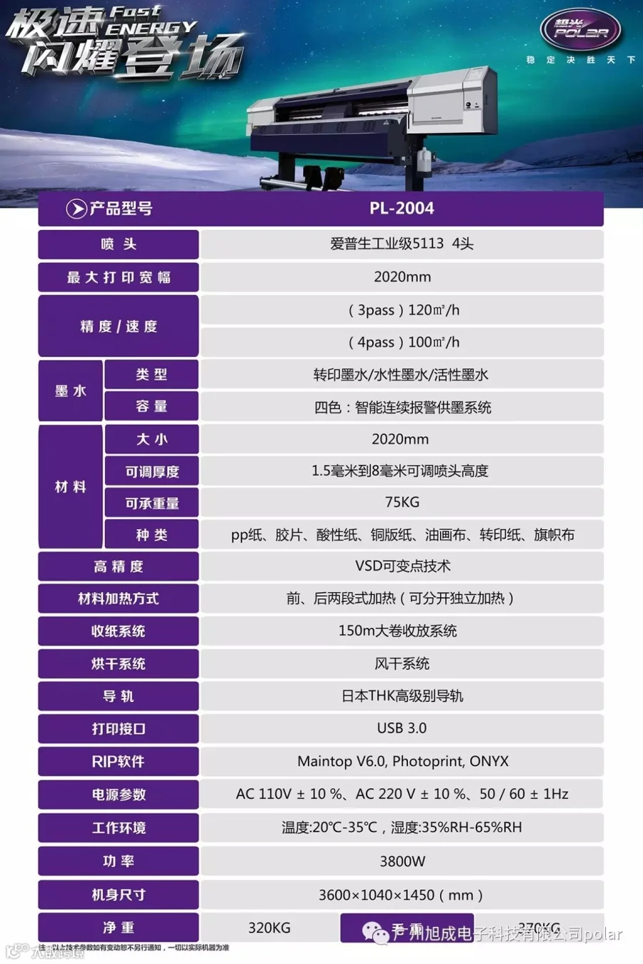 随着数码印花行业的迅速发展与对数码印花速度的追求,数码印花机喷绘打印技术也在不断地更新换代,高精度高速度的喷绘打印才是用户首选的喷绘设备条件。所以,极光数码印花机主力机型——PL-2004,是您追求高精高速的最佳选择。