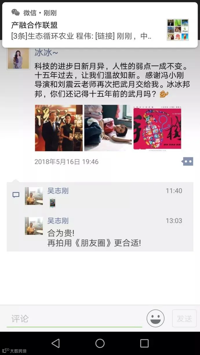 其实最开始《手机2》开拍前后几方有过几次沟通,影片名称初步定名为《朋友圈》,当崔永元发现影片开拍还是《手机2》后及时与编剧刘震云沟通,都是朋友还是希望对方不要用《手机2》这个片名。作为朋友的刘震云敷衍搪塞才惹得崔永元开撕。此时,本来不关范冰冰啥事,可她不识时务的帮腔,发微博称,武月很开心。我在朋友圈看到的更过分,内容是这样的:(科技的进步日新月异,人性的弱点一成不变。十五年过去,让我们温故知新。 感谢冯小刚导演和刘震云老师再次把武月交给我。冰冰邦邦,你们还记得十五年前的武月吗?)结尾还有一个勾引的手势表情符。