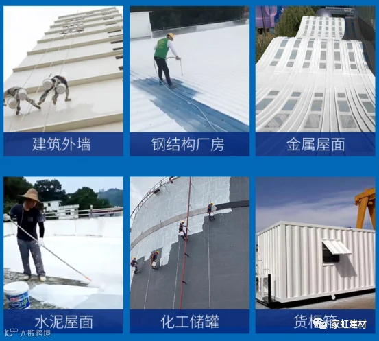 产品适用于建筑外墙、钢结构厂房、金属屋面、水泥屋面、化工储罐、水泥粮仓、移动基站、养殖厂、货柜箱等一切需要隔热降温节能的场所。