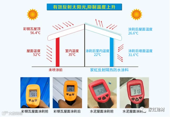就目前而言,工厂彩钢瓦屋面喷涂反射隔热涂料以达到降温效果的操作已十分常见,市场上应用广泛,各种水泥屋面在隔热上也采用了反射隔热涂料施工,施工方便,降温效果显著。