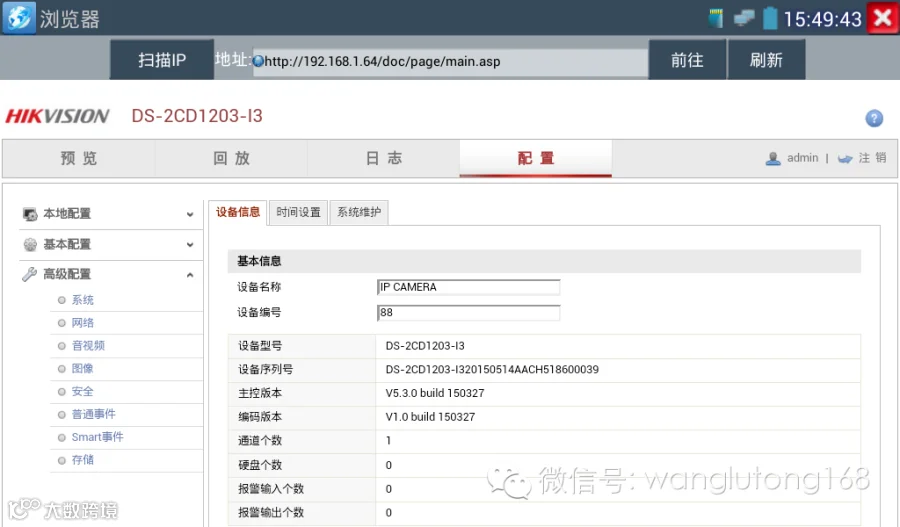海康摄像机出厂默认IP地址为192.168.1.64