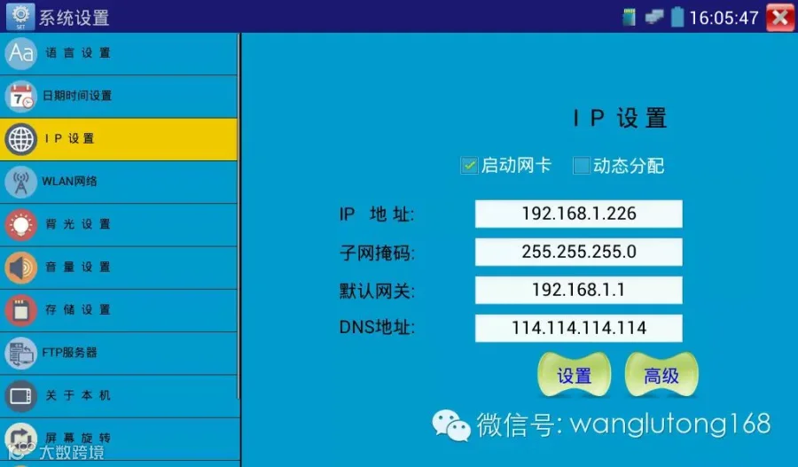 ●修改仪表IP与摄像机在同一网段,将工程宝本机IP 地址设置为192.168.1.226