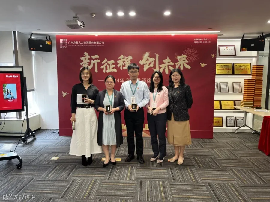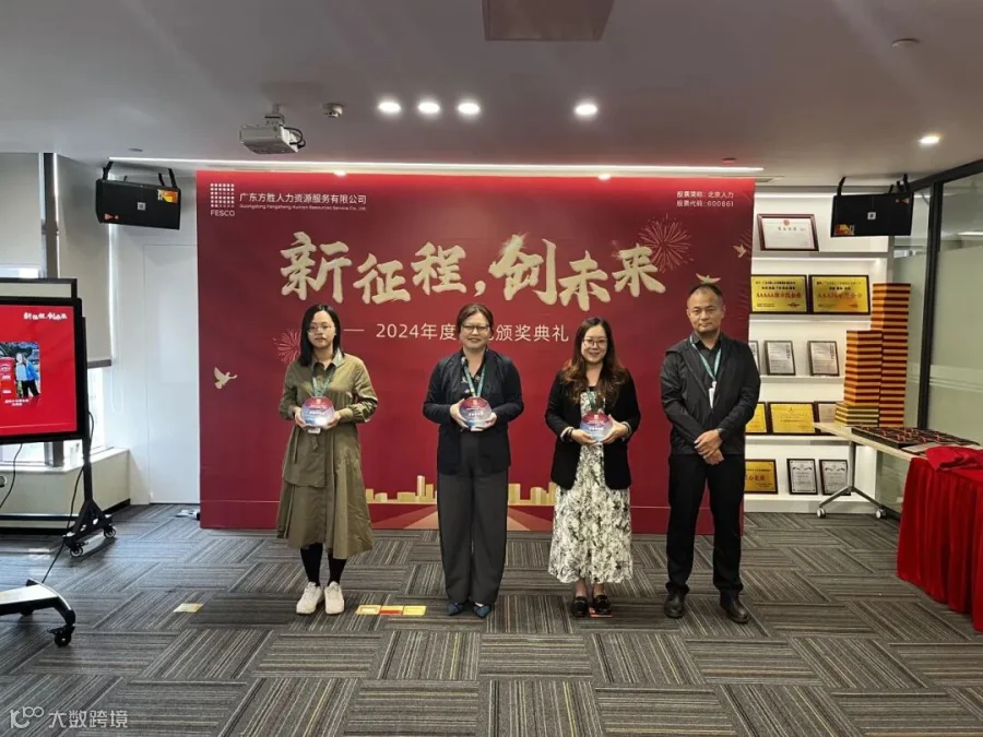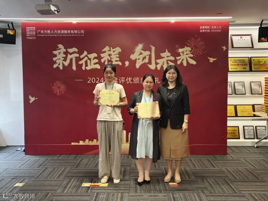 3月27日下午,"新征程,创未来"2024年度评优颁奖典礼在FESCO广东方胜13楼会议室顺利召开。此次会议以线下颁奖加线上直播形式进行拉满仪式感。公司党委书记、董事、总经理黄敏华,公司副总经理钟健,公司总监刘容出席会议,公司各级管理层及得奖员工参加会议。