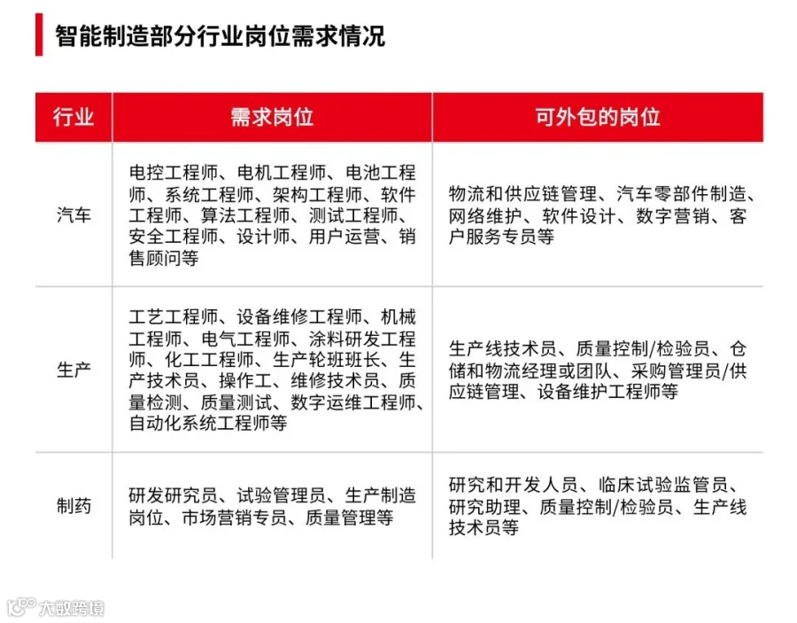 对于特定行业而言,如汽车行业的人才需求主要集中在三电、智能网联、运营、销售等领域;生产制造行业的人才需求则集中在工程/机械、化工、生产/营运、质量安全以及技工/普工等方面;而制药行业的主要需求则集中在研发研究、生产制造和营销相关岗位。这些不同领域的人才需求体现了各行业对专业技能和知识的不同侧重,同时也指出了教育和培训机构在人才培养上需要关注的重点领域。通过外包、专业培训和灵活用工等策略,各行各业都能在面对人才挑战时找到适合自己的解决方案,进而推动整个智能制造行业的发展和进步。
