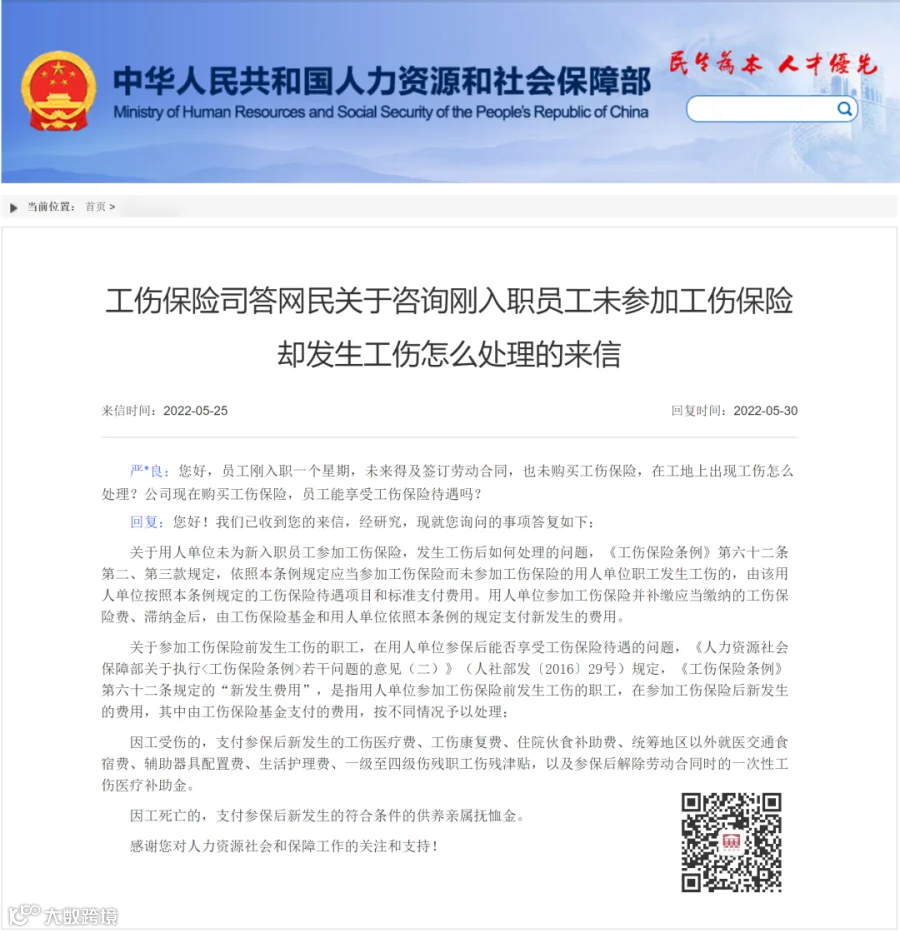 工伤保险司答网民关于咨询刚入职员工