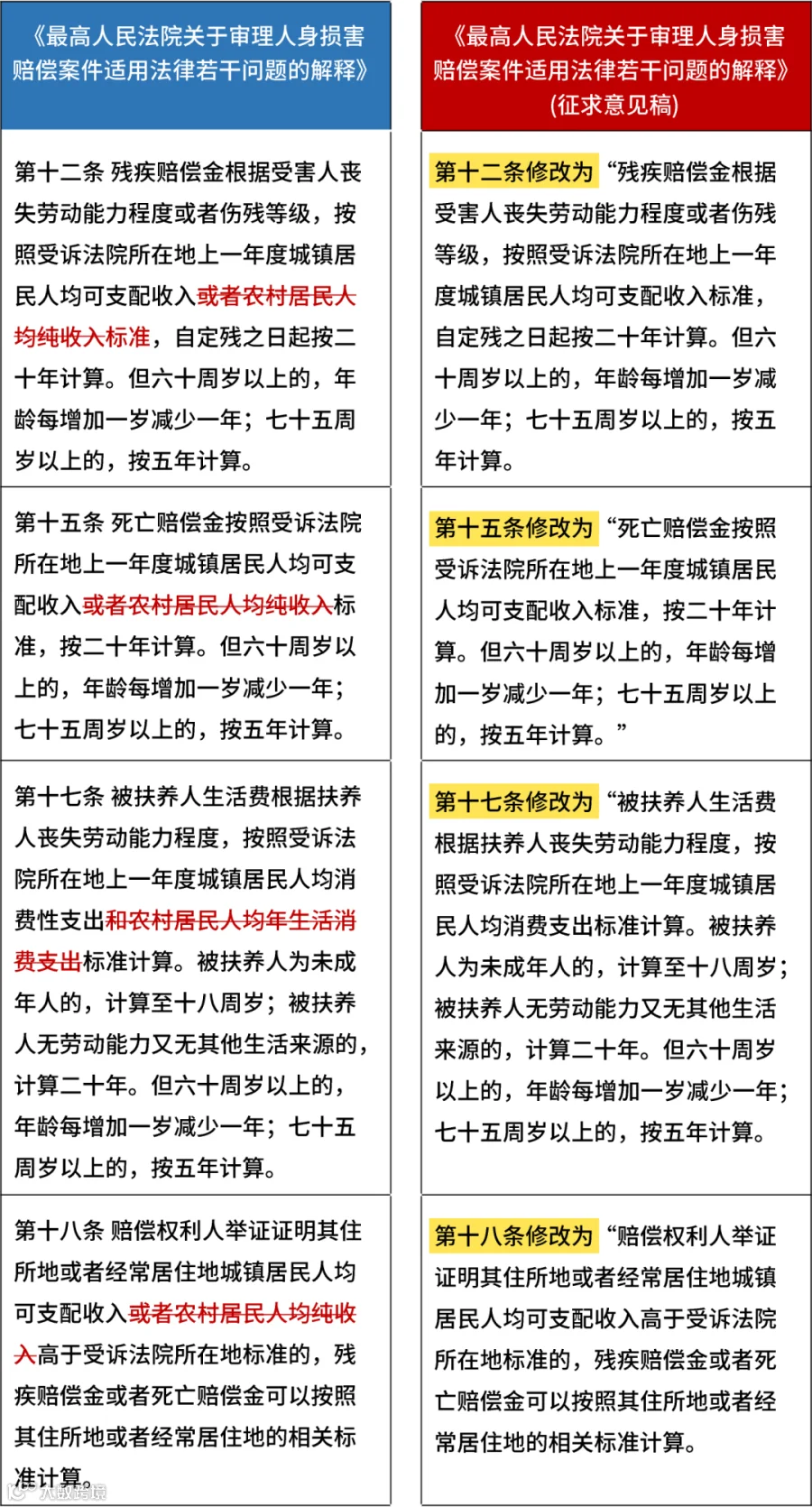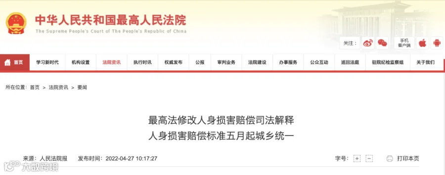 三、最高法:5月1日起城乡居民人身损害赔偿标准统一