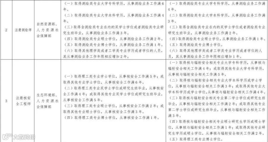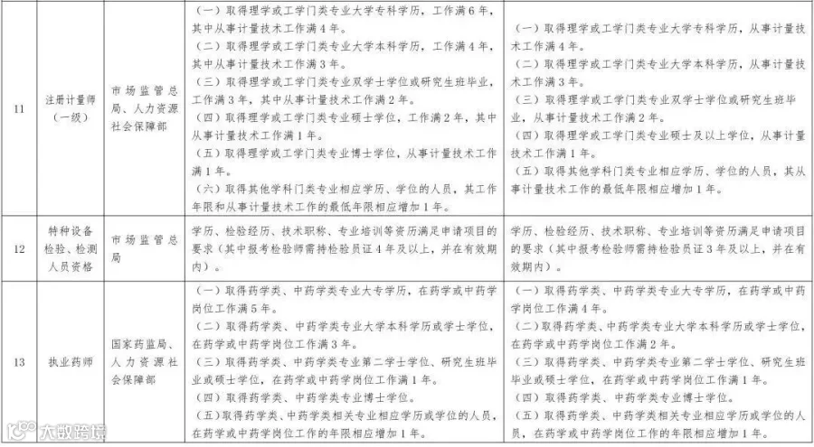 ■ 除调整考试工作年限要求外,13项准入类职业资格的其他考试报名条件不变。