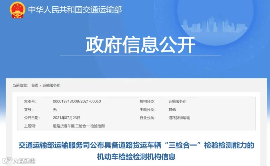 导读:来源|卡团(ID:chinakatuan)历时三年,“三检合一”终于全面落地了!日前,交通部发文明确全国70