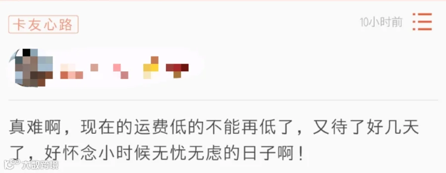 “本来疫情影响很多厂家出货量就少很多,找货本来就很难,加上高速免收通行费,有的货主借此压价,运费比往年更低了,我们也没办法,不跑的话每个月一万多的车贷都还不起!”一位社区卡友发帖抱怨。