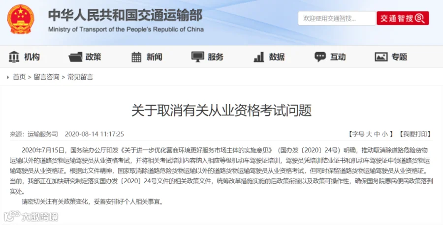 是否取消从业资格证?交通部正式作出答复!!