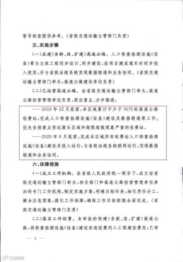 1、19年12月底,区域内50%以上高速入口完成称重设备安装;