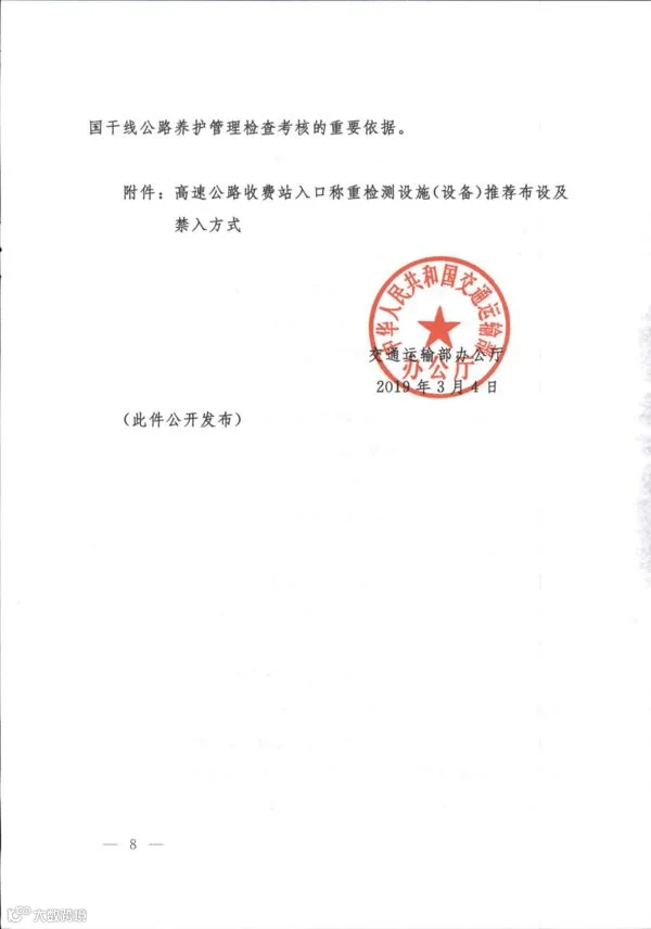2016年9月21日,修订后的《超限运输车辆行驶公路管理规定》施行,该规章明确规定,高速公路入口应当实行称重检测。