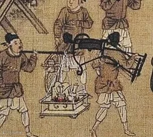《春游晚归图》描绘了一幅宋朝士大夫春日出游晚归的场景。从画中可以看到,随行的侍从里,有一位扛了一把折叠交椅在肩。仔细看交椅的椅背上,置有一个荷叶形的托首。