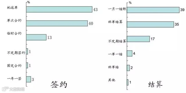 目前只有少数用户签订长期或固定合同,大部分为一单一签或不定期签订。多一半的货主不定期结算或按单结算,此外,大部分采用月结的形式。