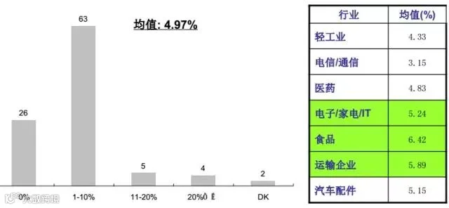 货主愿意为新服务支付5%左右的额外费用,食品、运输、电子行业的比例高于其他行业