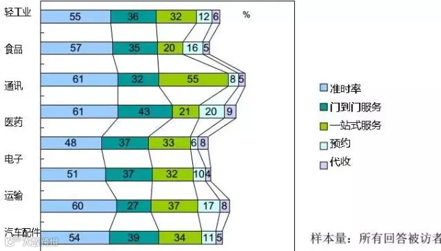 提供门对门服务和一站式服务也会死货主感兴趣的,医药和汽车配件行业强调门对门,而通讯业和运输也更关注一站式服务;
