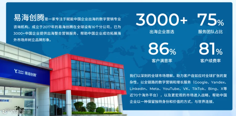 1.3000+企业的信赖: 我们已帮助包括大华股份、海底捞、传音控股、联塑、小鹏汽车等在内的3000多家中国企业成功拓展海外市场 。