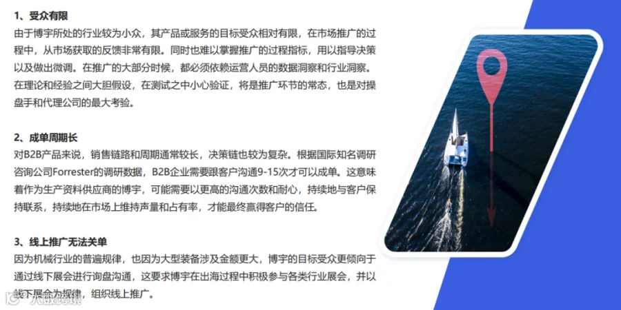 1.受众面窄,反馈滞后:行业极度小众,目标客户高度精准。在推广初期,往往难以通过简单的市场操作获得大量反馈,极度考验运营团队的数据洞察能力 。