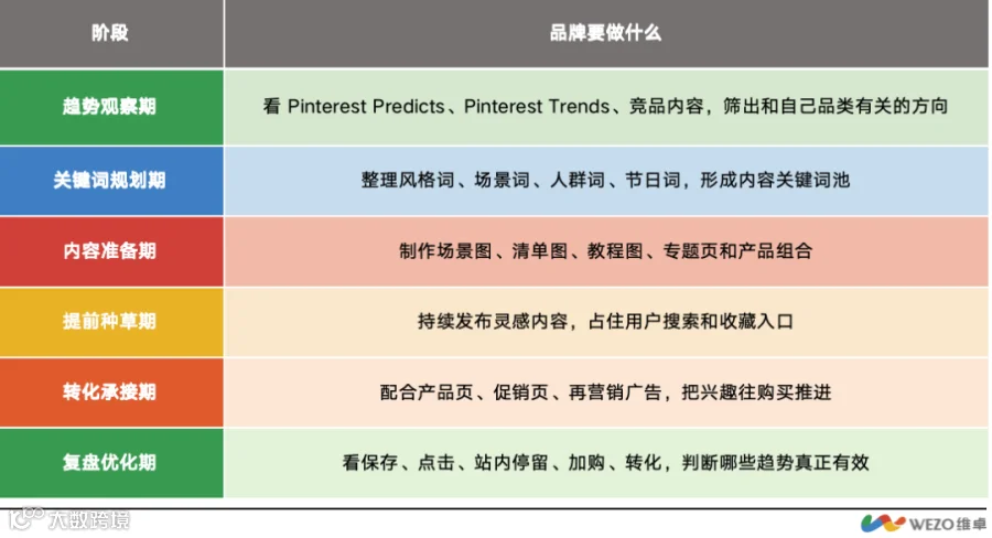 Pinterest的价值在于触达用户兴趣初期,品牌需将趋势转化为前置规划: