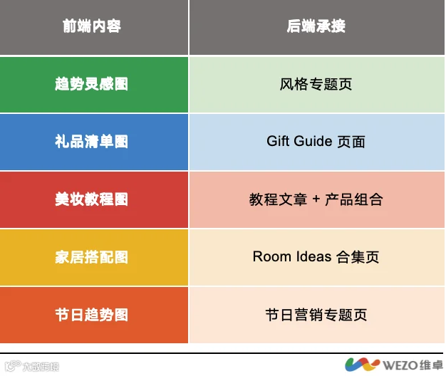 内容需形成体系:场景图-搭配图-教程图-清单图闭环,支撑节日专题与产品合集构建。