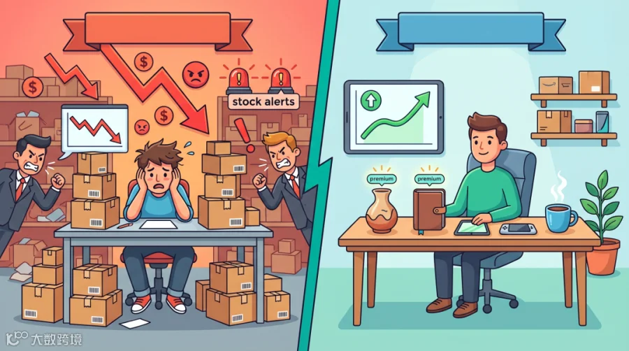非标品客单价较高,单量可控,利润空间充足。产品需求量稳定,无需盲目补货;同时体积通常适中,避免了高仓储成本与断货风险。相比之下,高销量标品断货将导致广告体系崩溃、自然排名暴跌,恢复成本极高,且市场份额易被竞争者抢占。