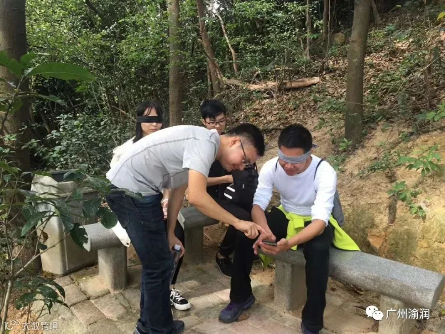 渝润的小伙伴们,为了提高团队之间的信任还有合作——蒙眼下山。