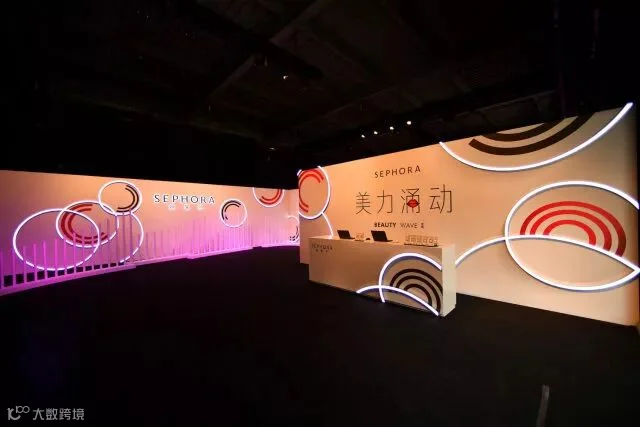 现场经典的SEPHORA丝芙兰黑白条波纹元素无限延伸、此起彼伏,如永远超前的美力精神,随着每一次涌动不断绵延。