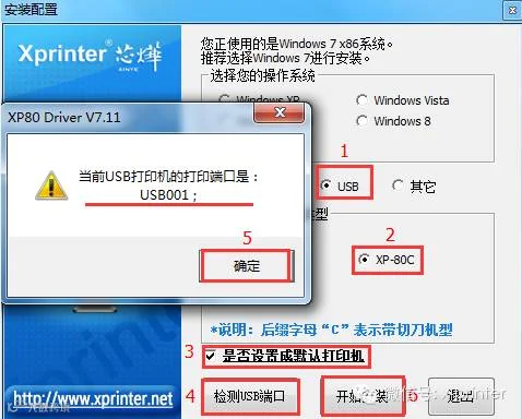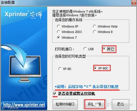 7、软件会自动检测电脑的系统不需手动选择,如果打印机是USB接口请选择“检测USB端口”软件会自动检测你打印机使用的是电脑上的哪一个端口。如下图: