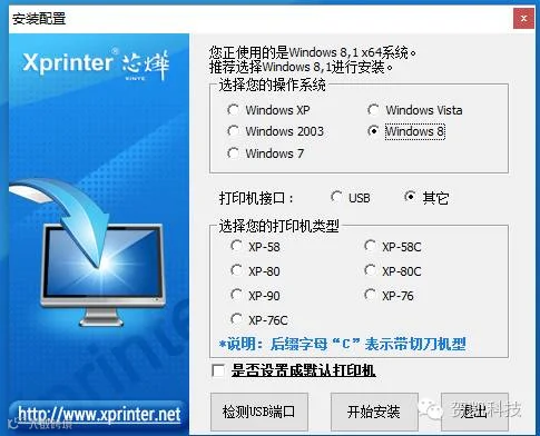 如您购买的是XP-58.XP-76系列的打印机,即选择XP-58或XP-76即可