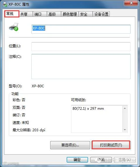 11、选择”常规”,点击”打印测试页”。如图: