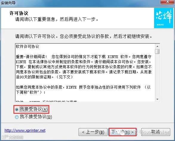 2、选择“我接受协议”,”下一步”。如图: