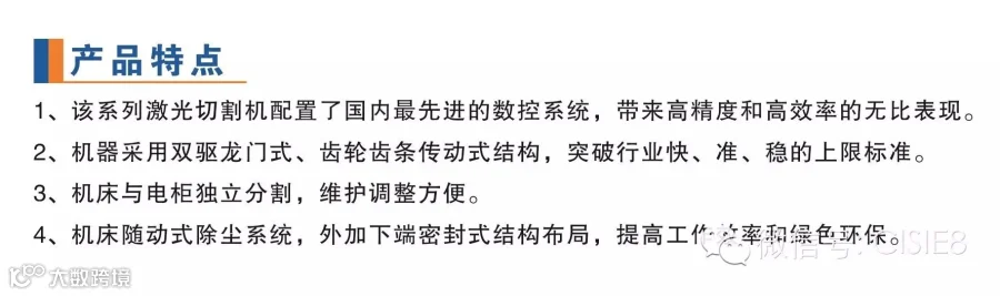 目前公司自主研发生产的激光设备、激光配套设备、激光自动化设备、激光切割等设的备性能十分稳定,具有高效率、高精度、操作便捷、节能、环保等特点。广泛应用服务于工程机械、建筑机械、粮食加工机械、纺织机械、轻工机械、农业机械、石油机械、电气制造、工具制造、电梯制造、汽车制造、印刷包装、装饰等行业,适用于钣金、管材、有机玻璃、模板、橡胶、环氧玻璃丝板等合成材料的切割、打孔,实现了在上述行业的无模高效化的生产加工。