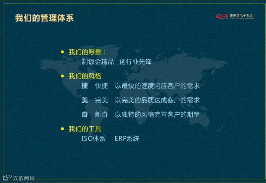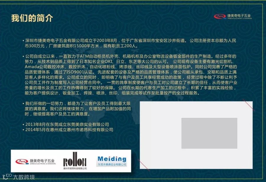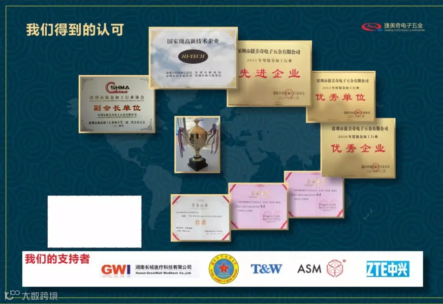深圳捷美奇于2006年8月公司注册正式成立,设址于深圳宝安区松岗燕川 2009年通过ISO9001-2008体系资格认证