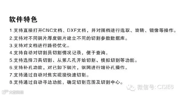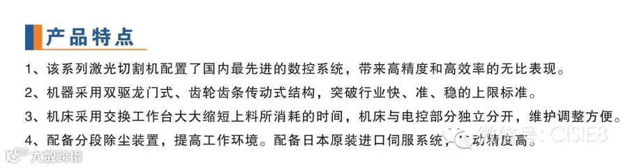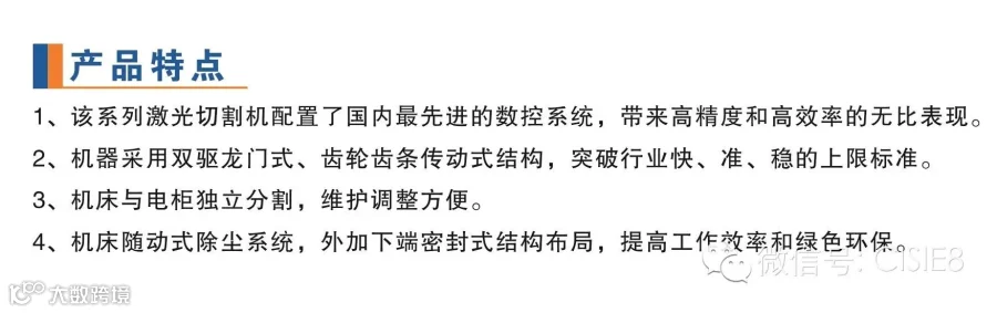目前公司自主研发生产的激光设备、激光配套设备、激光自动化设备、激光切割等设的备性能十分稳定,具有高效率、高精度、操作便捷、节能、环保等特点。广泛应用服务于工程机械、建筑机械、粮食加工机械、纺织机械、轻工机械、农业机械、石油机械、电气制造、工具制造、电梯制造、汽车制造、印刷包装、装饰等行业,适用于钣金、管材、有机玻璃、模板、橡胶、环氧玻璃丝板等合成材料的切割、打孔,实现了在上述行业的无模高效化的生产加工。