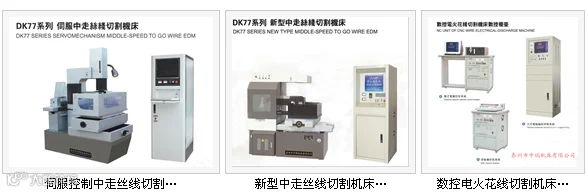 主要产品有DK77系列数控电火花切割机床、D71系列电火花成形机、高速电火花小孔加工机、XK系列数控铣床、XH系列数控加工中心、数控雕刻机,同时应客户要求生产各式专机。