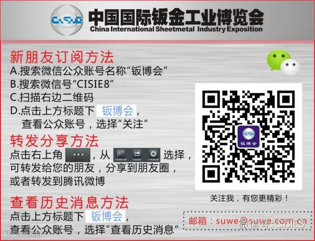 》》促进钣金交流,分享行业资讯《《,欢迎分享到朋友圈让更多朋友阅读,更多精彩分享请关注钣博会微信公众平台,微信号:CISIE8