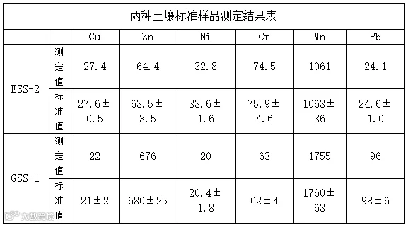 土壤消解是原子吸收上机前最为重要的前处理部分,消解方法多种多样,通过反复试验,验证了上述微波消解体系完全可以适用于铜、锌、镍、铬、锰、铅6种金属元素的测定。微波消解仪在处理土壤上具备了一些独特的优点。首先,可以迅速有效地分解试样,缩短溶样时间。其次,试剂用量少,一般只需几毫升。第三,试样在消解过程中的损失和交叉污染的可能性大大降低。另外,能耗降低,易于实现自动操作,同时可减少常规消解酸雾对环境的污染。