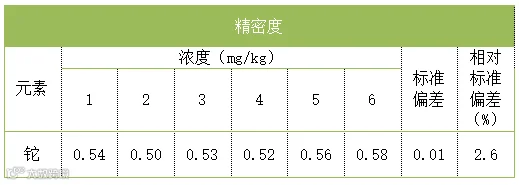 取同一土壤样品6份按上述方法消解所得的试液,上机测定,求得相对标准偏差。